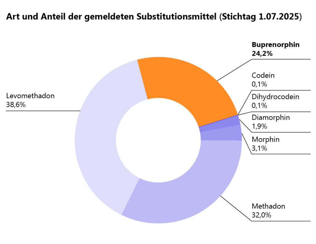 Abb. 1: Art und Anteil der gemeldeten Substitutionsmittel (Stichtag 01.07.2025)[1]